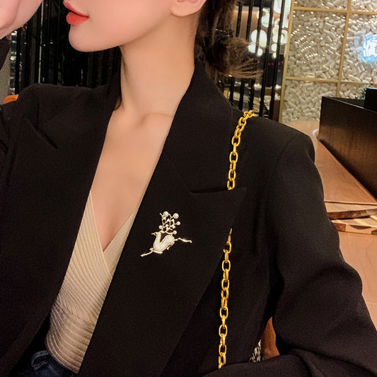Elk Design Pearl Brooch