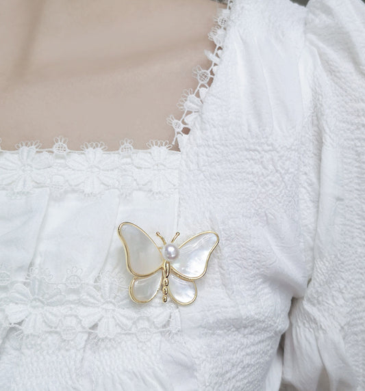 Butterfly Design Pearl Brooch
